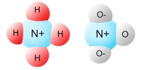 Ammonium ions (left) can be mixed together with nitrates (right) to create a fertilizer called ammonium nitrate. This chemical fertilizer is used to add nitrogen to crops.