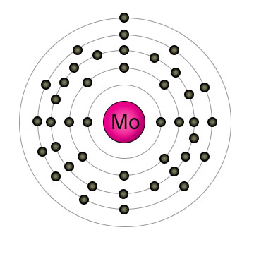 Molybdenum has an atomic number of forty two, making it the 2nd largest nutritional element. Iodine is the largest. Molybdenum has thirteen electrons in it's partially filled 4th shell, and one electron in it's 5th (outer) shell. It's most stable when it loses either four or six electrons (Mo4+ or Mo6+). This lets it shed it's 5th (outer) shell, and sets up it's 4th shell as the valence shell, with the ability to form multiple covalent bonds with other atoms.