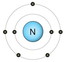 Nitrogen has seven protons and seven electrons. Two of these electrons fill it's inner shell, while the remaining five are located in it's outer shell. Since nitrogen's outer shell can hold up to eight electrons, it's looking for three more. If it finds another free nitrogen atom, they fill each other's three empty spots by forming a very strong triple bond, creating an N2 molecule. N2 molecules make up 78 percent of the atmosphere.