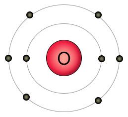 Oxygen has eight protons and eight electrons. It has six electrons in it's outer shell, and wants two more. That's why it likes to form a double bond with two of a carbon atom's empty spots to form carbon dioxide (CO2), or single bonds with two hydrogen atoms to form water (H2O). When it can't find other kinds of atoms to bond with, individual oxygen atoms will form double bonds with each other, creating O2 molecules.