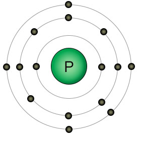 The most biologically useful form of phosphate is a molecule called inorganic phosphate (PO43-). In this molecule, the phosphorus atom forms single bonds with three oxygen atoms, and a double bond with a fourth oxygen atom. This arrangement places all five of phosphorus' outer electrons in covalent bonds.