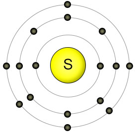 Sulphur has an atomic number of sixteen, with six electrons in it's outer (3rd) shell. When combined with other sulphur atoms, they form single covalent bonds, creating an eight-atom ring-shaped molecule called octasulphur. The octasulphur molecules then join together to form sulphur crystals. In this form, sulphur is a bright yellow solid at room temperature. Sulphur atoms can both donate and recieve electrons with other elements (depending on the element), which adds to their usefulness.