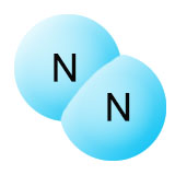 Nitrogen atoms combine with each other to form N2 molecules, which make up 78% of the air we breath. We can't use nitrogen in this form for nutritional purposes, since certain bacteria are the only organisms that can break it apart.
