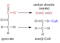 Figure 4 - Pyruvate is converted to acetyl, then combined with co-enzyme A to form acetyl-CoA. |