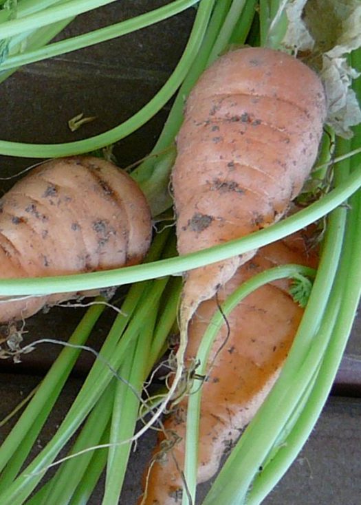 Why do carrots place beta carotene in their roots if roots are in the dark and don't do photosynthesis? We did that. Carrot roots weren't always orange. They used to be purple. Hundreds of years ago farmers selected varieties that stored beta carotene in their roots because they liked the orange color. |