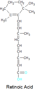 Retinoic acid's ability to control gene expression is also extremely important for embrionic development. When a fertilized egg starts dividing into multiple cells, all of the cells are the same. To develop into an embryo, the cells need to differentiate into skin, nerve, muscle and many other types of cells. A stem cell does this by producing one set of proteins for a skin cell, another set for a blood cell, and so on. The proteins that are produced depend on which genes on the DNA molecule are turned on (expressed). Retinoic acid controls gene expression for many of the proteins that are involved in cell differentiation. If a mother doesn't consume enough vitamin A during pregnancy, the fetus can miscarry or become deformed.
