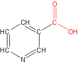 Niacin is a small molecule composed of a single pyridine ring with a functional group attached. It comes in two varieties, nicotinic acid and nicotinamide. The only structural difference between the two is in the functional group. Nicotinic acid has a carboxyl (COOH) group, while nicotinamide contains a carboxamide (CONH2) group. The small structural difference produces large functional differences between the two niacin molecules because the differences determine which enzymes and other molecules each type of niacin is able to work with. The functional groups of each type of niacin are colored red in the adjacent diagrams.